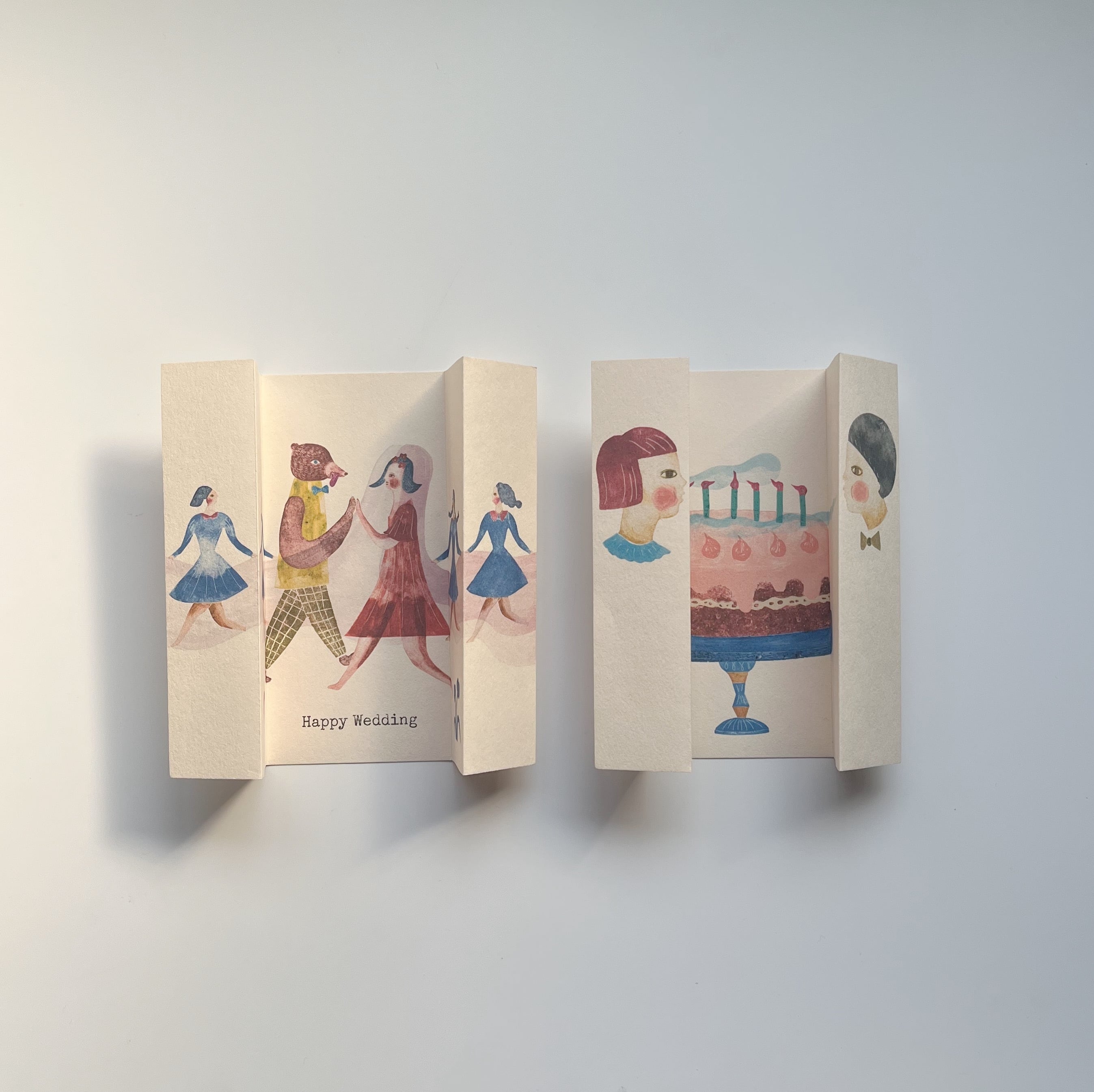 観音開きの形状を生かしたメッセージカードです。カードがぴったりと収まる手作りの封筒が付いています。