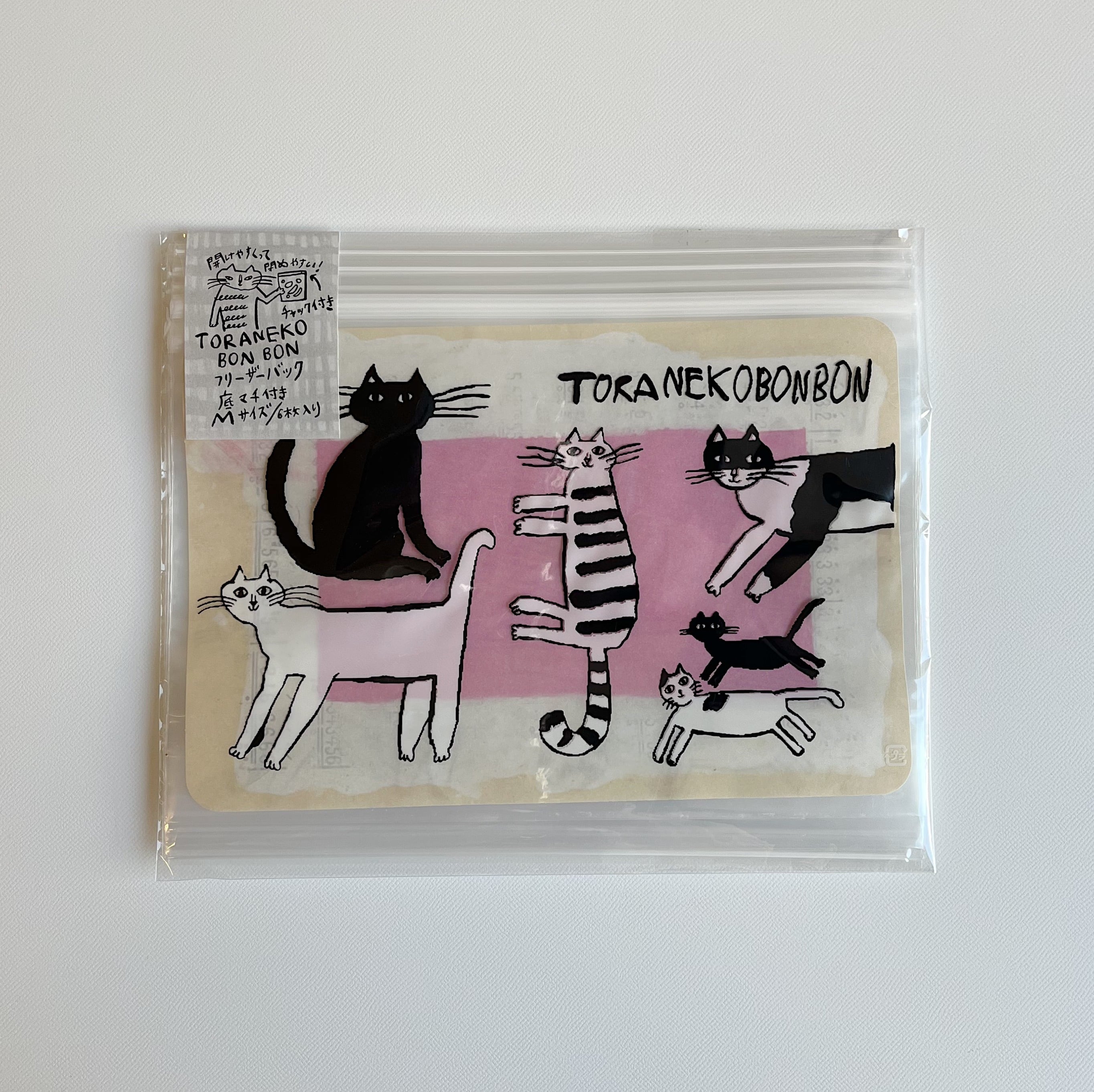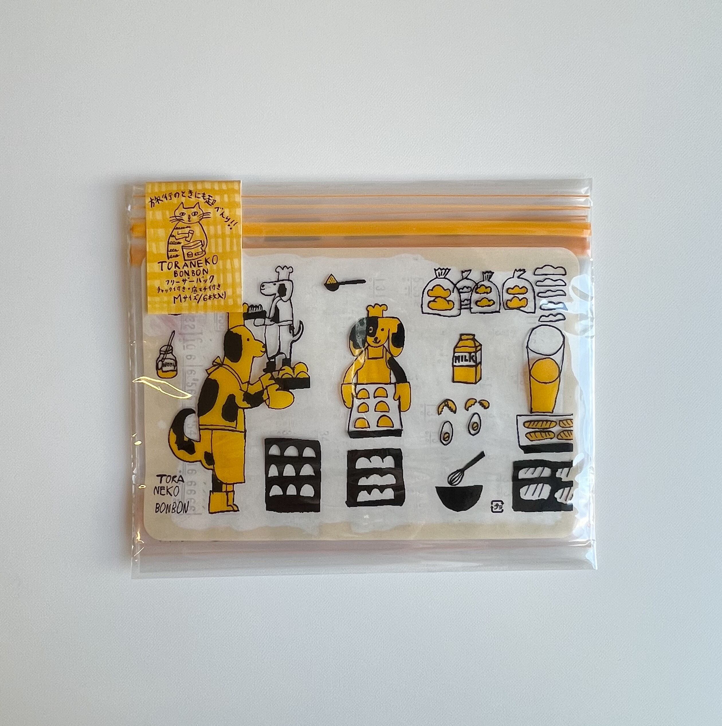 旅するレストラン•トラネコボンボンこと、料理人、中西直子さんのイラストがプリントされたチャック付きのフリーザーバッグです。6枚入です。